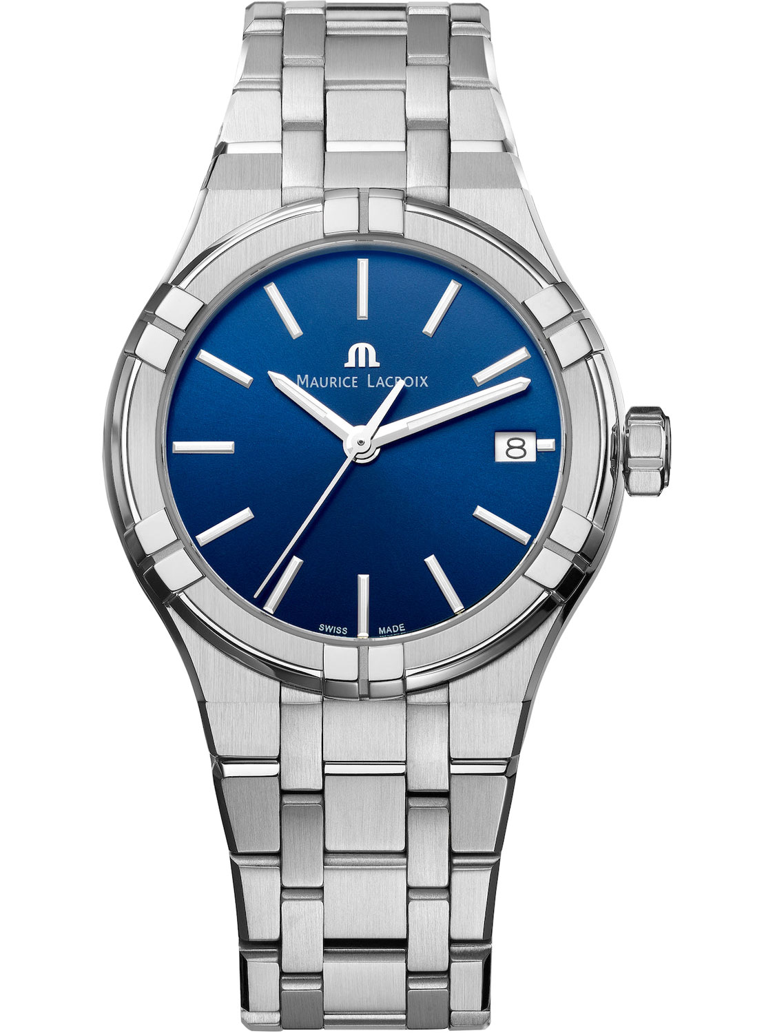 Диаметр: 35 мм. Калибр: ML. Индикация даты. Сапфировое стекло с двойным антибликовым покрытием. Завинчивающаяся заводная головка. Часовая шкала: Индексы с родиевым покрытием. Стрелки: с алмазной обработкой, родиевым покрытием и люминесцентным покрытием Super-LumiNova. Браслет из нержавеющей стали. Раскладная застежка из нержавеющей стали. Международная гарантия 2 года. Подарочная коробка.